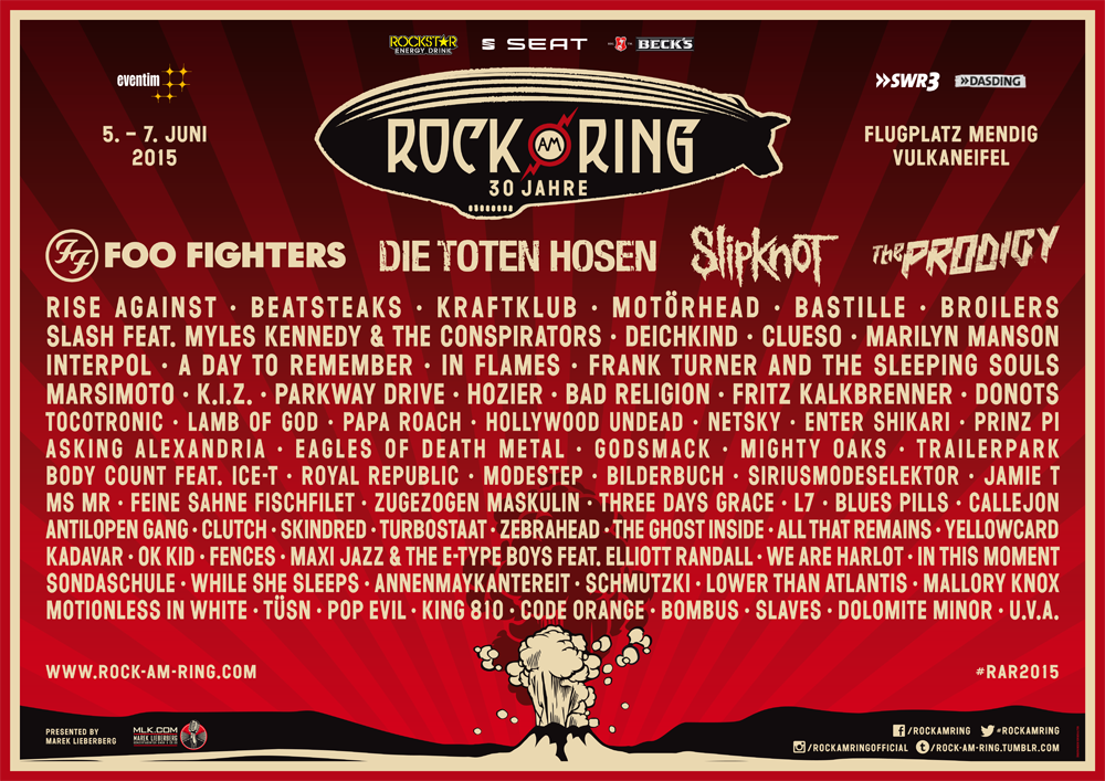 Foo Fighters, Die Toten Hosen, Slipknot, The Prodigy, Beatsteaks, Rise Against, Motörhead, Deichkind, Interpol, Rise Against, K.I.Z., Broilers, Slash, Kraftklub, A Day To Remember